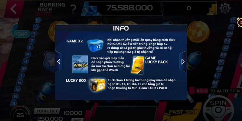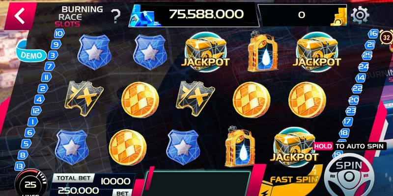 Tham gia chơi Burning Race, chắc chắn sẽ không làm anh em thất vọng khi được trải nghiệm với lối chơi hấp dẫn. Đặc biệt lôi cuốn và kích thích với hình thức quay vòng để tìm ra tổ hợp mạnh. Từ đó mang lại phần quà giá trị có thể lên đến 10.000$, một con số lớn giúp nhiều anh em làm giàu chỉ sau một đêm.